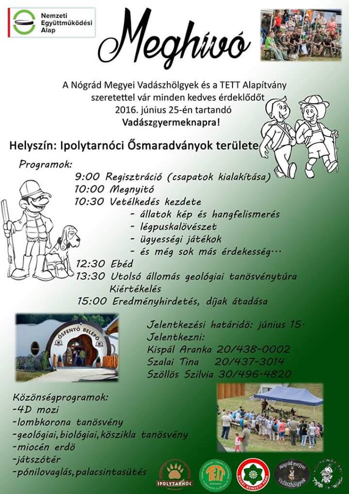 Június 25-én gyerekek számára rendeznek vadásznapot az Ipolytarnóci Ősmaradványok területén. Részletekért kattintson a plakátra.